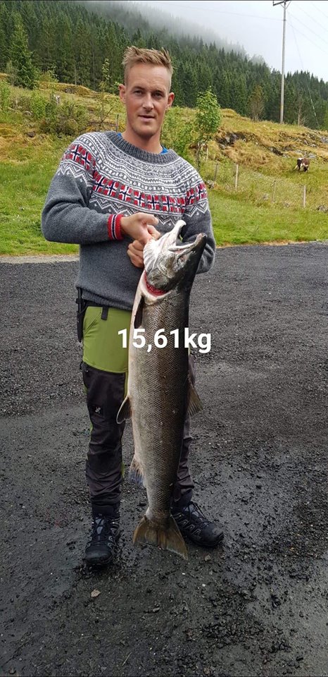 Årets fangstkvote på 30 laks over 3 kilo var allerede tatt da Kenneth Stubhaug i går morges landet sin kjempelaks på 15.61 kilo i Hovefossen (bildet). Men den ble ikke gjenutsatt, slik reglene sier. Ene øyet var skadet av spinneren og laksen måtte derfor bøte med livet og havnet på kjøkkenet til gamleheimen i Nustdal, forteller Kenneth til Fiskeguiden.no. Redaktør Eivind Fossheim i Fiskeguiden.no har tidligere hevdet at man bør bare ta livet av fisk med gjelleblødning dersom det er gjenutsettingsplikt. Med sin lange erfaring som fiskeguide mener han at fiskere litt for lettvint kan benytte skader som argument for å ta liv av fangsten sin, mens det meste leges når fisken er tilbake i sitt rette element.