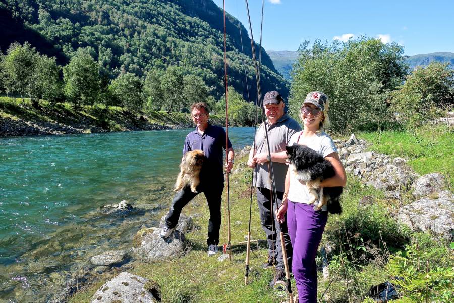 Nå er det sjøauren de er ute etter i Aurlandselva. Ved å gå inn på nettmagasinet www.fiskeguiden.no kan du klikke deg inn.på infosiden til Aurlandselva eller en av de andre spesialsidene til de mer enn 2500 fiskeplasser i Norge. Her finner du kontaktene du trenger og fiskeguidene som du trenger for å bli kjent med de nye fiskeplassene dine. I Aurlandselva møtte vi John Torlid som holder til i Skredsanden Hytter, og på tlf 95979890 får du tips både om fiskekort, fiskeplasser og innkvarteringsmuligheter.