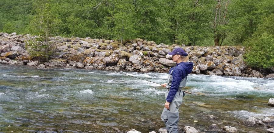 Jeg har alltid vært en liten naturfreak, så bare det å stå der ute i elva med fluestanga var for meg en opplevelse i seg selv. Kastingen var så som så, men desto større var gleden de gangene kastene satt. Kjæresten min, Frode Andersen, lærte meg å binde fluer, og på møtene sammen med dyktige og kunnskapsrike medlemmer i fluegruppa til Lillehammer Sportsfiskeforening fikk jeg inspirasjon til å utvikle meg videre som fluefisker.