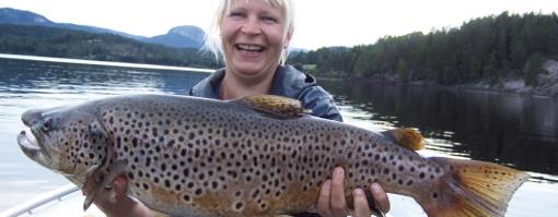 Ørreten ble etter hvert sliten, og ekteparet fikk den om bord. Dagen etter ble den veid inn på Spar-butikken på Prestfoss. Vekta viste 4,446 kg og fisken målte 72 cm!