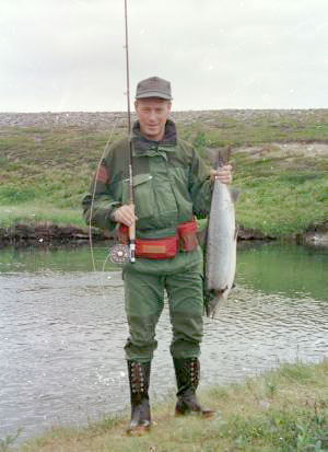 Nå er laksen tilbake igjen. Sommeren 2000 ble det i hvert fall tatt 40-50 laks i den vesle elva, og blant de aller heldigste var Arne Elvestad fra Kjøllefjord.