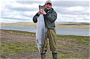 Alexander Khrustov med sin laks på 24 kilo 7.juli 2012