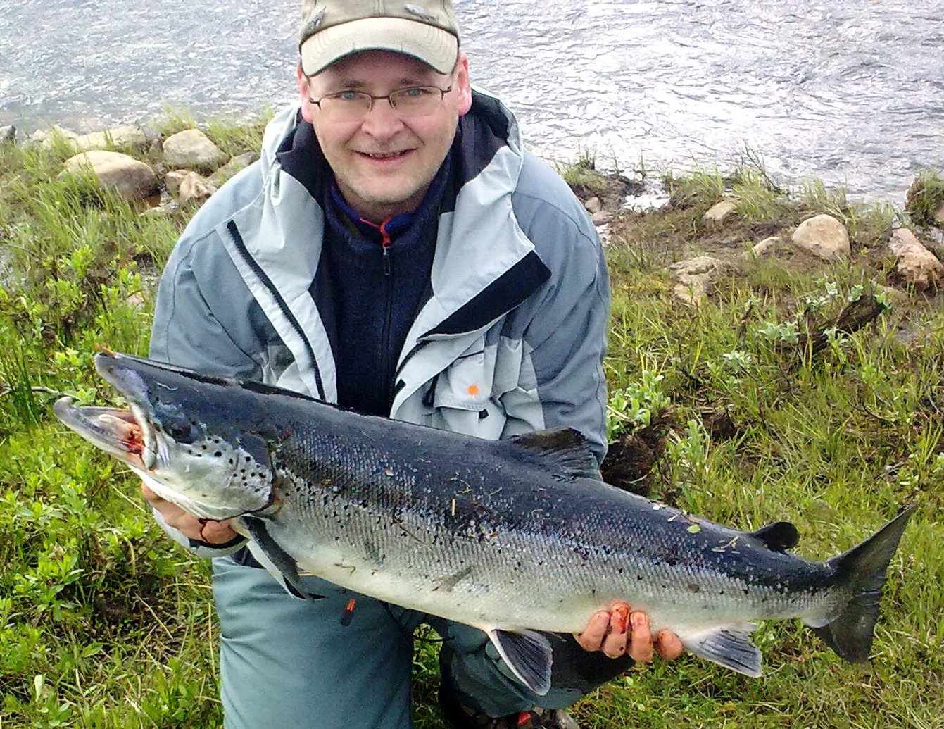 Rudolf Kristoffersen fikk årets største laks, på flue ved brua til Stilla, sone 1, 31.juli 2009. Den ble satt tilbake.
