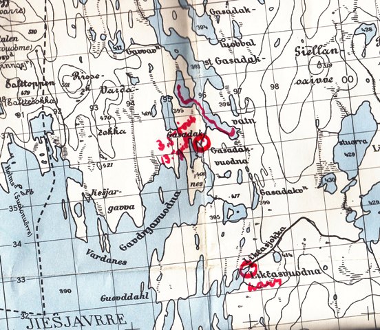 Store Gasadakvatnet. Kjempefine fiskeplasser langs hele sørsida av den søndre delen av vannet, og i osen der elva som renner ut i Gasadakvuodna på nordøstsida av Jiesjavrre.