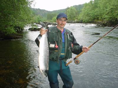 Bjarte Hellebust,N-6968 Flekke, tel + 47 57 73 57 28 / + 47 996 26 175. Han leier også ut hytte ved elva.