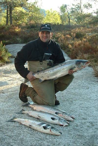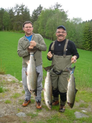 De to fiskekompisene tok hver sin laks på rundt 7 kilo allerede på morgenkvisten åpningsdagen. Magne fikk sin på første kastet i Atteberhølen, Frank tok sin laks etter få minutter i Sagehølen.