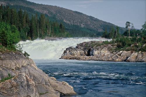 Det 17 meter høye fossefallet Laksforsen i Vefsna.