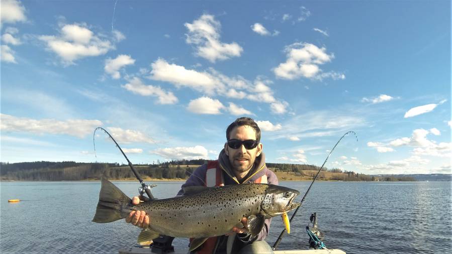 • Robert Torp har rekorden foer ørret tatt på dregg i Mjøsa
