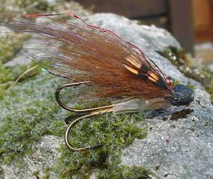 Leif-Arne fikk flua av den svenske sportsfiskeren Mikael Jansson, som forteller at flua består av en enkel kobbertube med rød butt, brun vinge av tempelhund med 3 strå påfuglherl og junglecock. Mikael kan treffes i telefon + 47 90 19 14 53 eller via e-post: Denne e-postadressen er beskyttet mot programmer som samler e-postadresser. Du må aktivere javaskript for å kunne se den..
