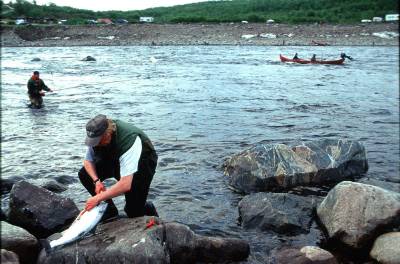 Men også sportsfiskerne på land får det snart travelt. Når de virkelige store flakene av mellomstor og mindre laks siger oppover i siste uke av juni og de to første ukene av juli, gjelder det å være på plass.