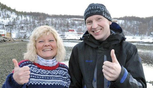 Gunhild Okstad i Salangselva Fellesforvaltning og Tor Arne Chruickshank på Elvelund Camping er svært godt fornøyd med tallene etter årets fiskesesong i Salangselva. Men rekord til tross, mener de det er mer å gå på i vassdraget. Trappa i Kistefossen er nå utbedret. Nå vil de ha noe gjort i Langfossen for å få mer fisk inn til store gyteområder i Salangsdalen. Foto: Knut Solnes