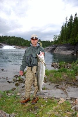 Jim Aas med sin første fluelaks på 7,4 kilo 6.juli 2010