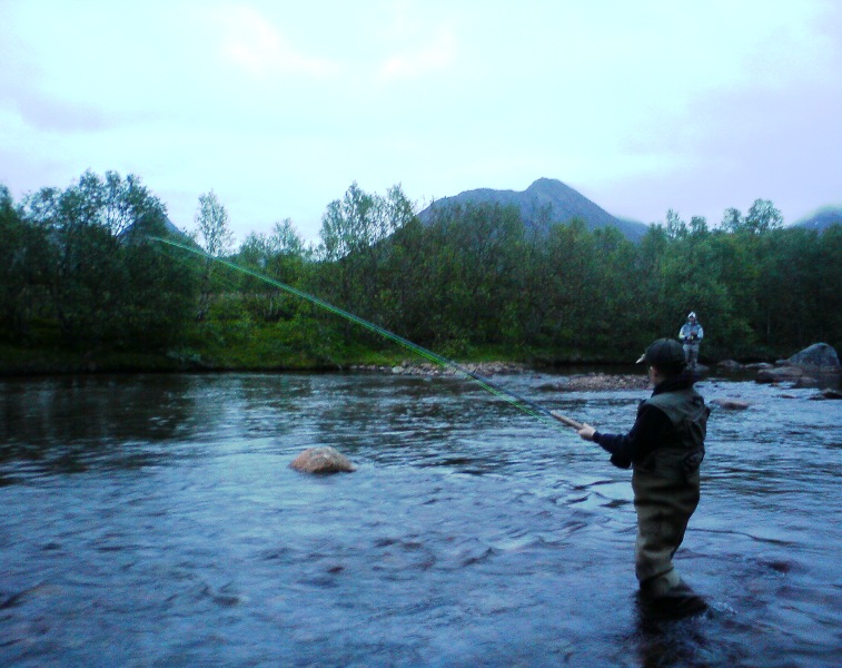 Allerede som 7-åring tok Tobias sin frste laks på 1,4 kilo i Roksdalsvassdraget. Han var liten og veik. Derfor var det lettest å starte med en tohonds fluestang, sier far Børge. Siden har han lært seg det meste av kasteteknikk. Kaster like godt med høyrearmen som venstrearmen, og mestrer såvel rullekast og speykast.