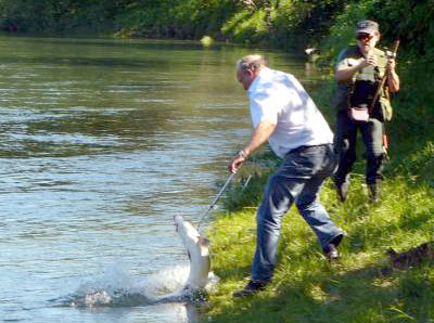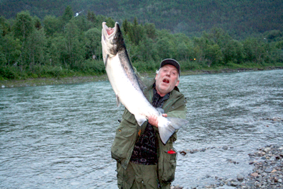 Per Pedersen fra Storjord hoppet av glede da han sommeren 2006 landet sin laks på 12,1 kilo. Det holdt ikke til årsrekord. Den fikk Jens Opdahl fra Skjomen en sin rugg som veide.13,5 kilo.