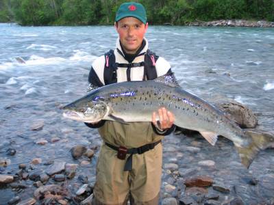 Kristoffer med årsrekorden i Beiarelva 2009.