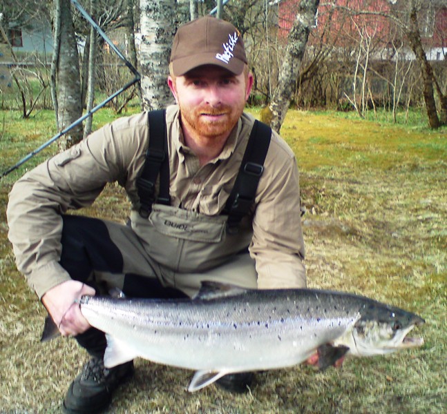 Arne Aalberg med sin 8 kilos laks 15.mai 2011