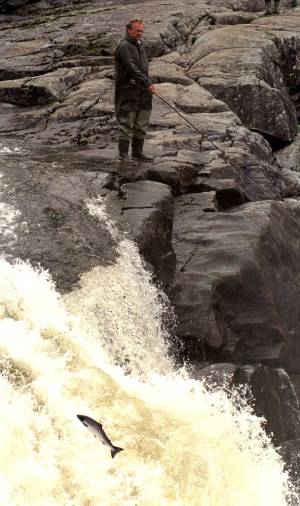 Fiskeguidens kjentmann Steinar By forteller at mesteparten av laksen, og spesielt storlaksen tar spranget gjennom fossen utenfor fisketrappa i starten av sesongen. Først når vannføringen går litt ned, finner fisken lettere inngangen til trappa og foretrekker da den fremfor fossespranget.