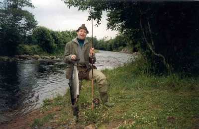 På det øverste bildet har Ottar Moen nettopp landet en laks på 8,4 kilo i hølen Skillet i sone II. Bilde nr.2 er hentet fra samme hølen, og her er det Håkon Austrøne som har dratt på land en laks på 5,7 kilo. Fin fisk, og nydelig elv, ikke sant?