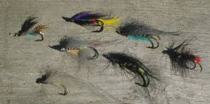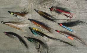 Bjørn Urkegjerde har en velfylt flueboks. Flere av mønstrene er kjente klassikere. Noen er nye for oss. Han peker ut en langhåret to toms grå tubeflue. Han kaller den Grå mus, og den er favoritten hans når storlaksen går på elva. For enhåndsstanga bruker han tradisjonelle mindre laksefluer med enkel krok. For sjøørret enda mindre. Han åpner flueboksen sin og plukker ut flere godbiter.