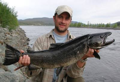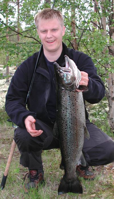 Øverst Sven Erik Aasheim med sin ørret på 5,25 kilo tatt 11.juni 2005.