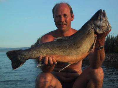 Erik Ovnerud fra Jevnaker tok en røye på 4,03 kilo på wobbler under trollingfiske i Randsfjorden i slutten av juni 2001 etter 100 timers fiske!