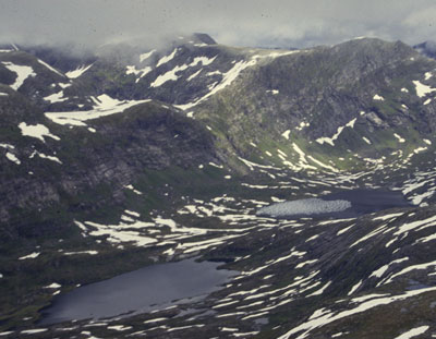 Vassendevatnet i forgrunnen, bak Kupevatnet og aller bakerst oppe til venstre ligger Trollekupa.