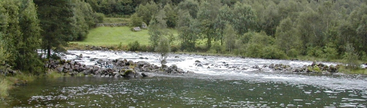 Øvre del av Endestadsona, kulpen Dalheim nedenfor munningen på vannet. Dyp høl, en de de steder der laksen overvintrer