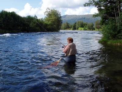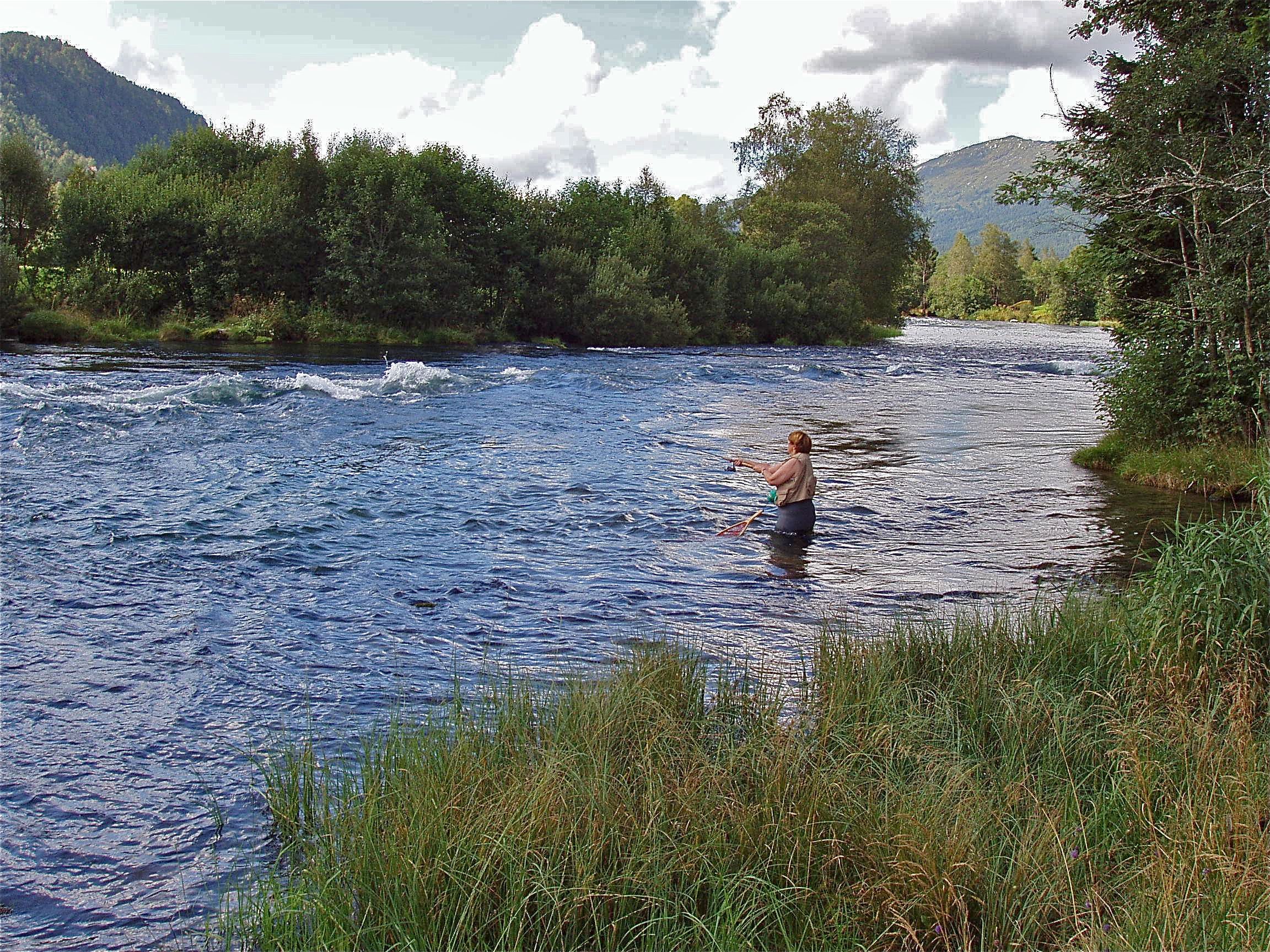 ikke båt ved elveosene. Den skremmer fisken ut på dypt vann utenfor din rekkevidde. Bruk heller vadebukse og stå i vannet