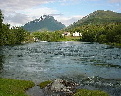 Fiskestrekningen fra sjøen til Eidsfossen er tre kilometer og disponeres av Gloppen Hotell.