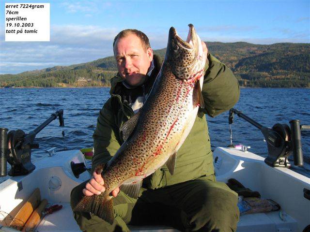 Johnny Braata tok en runde med< trollingbåten sin på Sperillen 30.desember 2004 og fikk en ørret på 6 kilo på Rapala Husky Jerk.