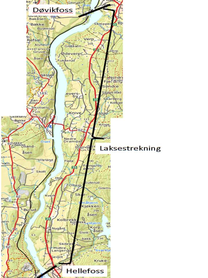 Laksestrekningen oppstrøms Hellefoss-Døvikfoss