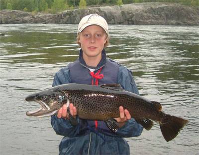14-åringen Knut Erik Berget Nilsen tok denne flotte brunørreten på 4,44 kilo nedenfor Embretsfoss på en Rapala countdown wobbler 11.september 2004.