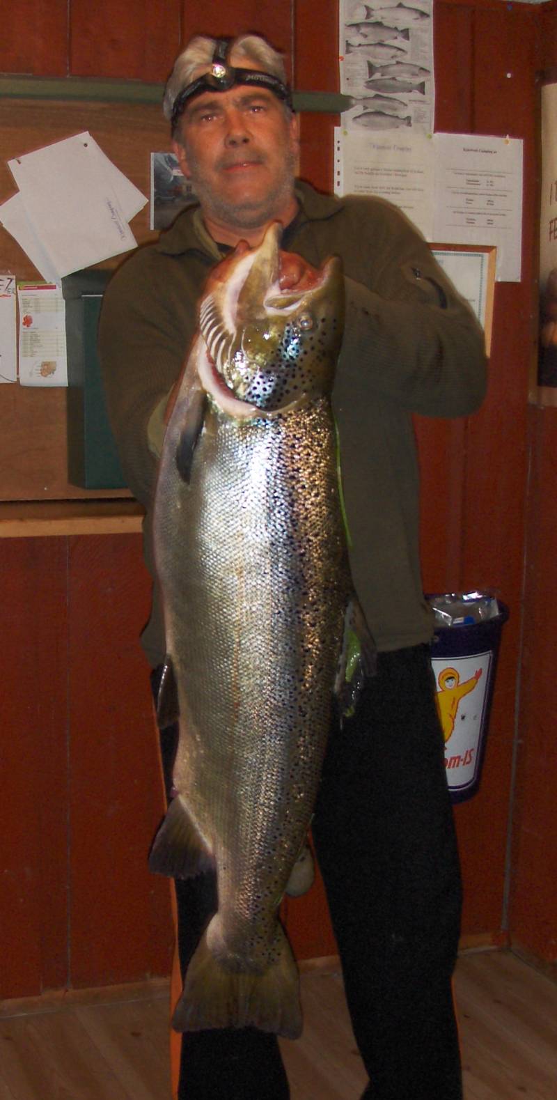 Eilev Nysveen tok 18.august 2003 en pukkellaks på 2,2 kilo på flue under sjøørretfiske i Eio i Eidfjord. Det var en hunfisk i full gytedrakt, og så gytemoden at rogna rant av den.