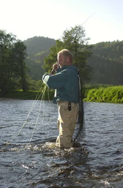 Ettermiddagen har så vidt begynt å komme når vi sier takk for praten. Ødegård tar med seg stanga og rusler mot elva.
