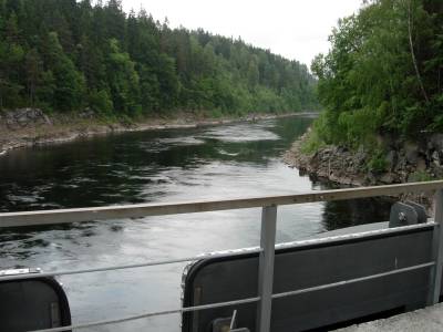 På den nederste strekningen fra munningen og opp til sone 2, til den nye E 18-brua, flyter elva rolig. Sone 1 egner seg best for båtfiske. Tilgjengeligheten fra land er dårlig.