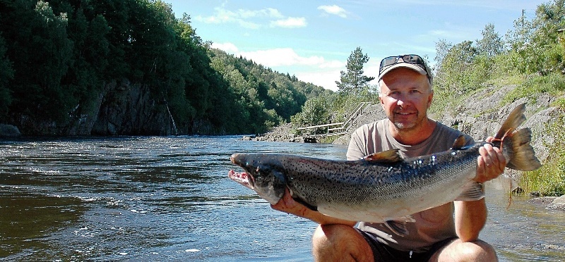 Leif G. Nygård tok i fjor en laks på 8,5 kilo, men det finnes langt større fisk i vassdraget. En laks på 17,5 kilo ble funnet av fiskeoppsynet i et ulovlig garn i 1999