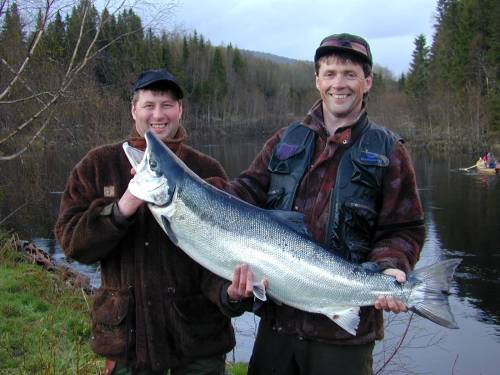 – Ikke verst. Kanskje det rimeligste fiske i hele vassdraget, sier Lassemo og Skarland til Trønder-Avisa forsan laksestarten 15.mai 2007.