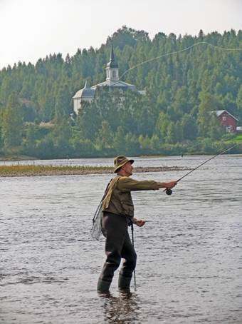 På denne strekningen skifter elva mellom stryk og stiller. Den er fin å vade og du kan få stor fisk her.