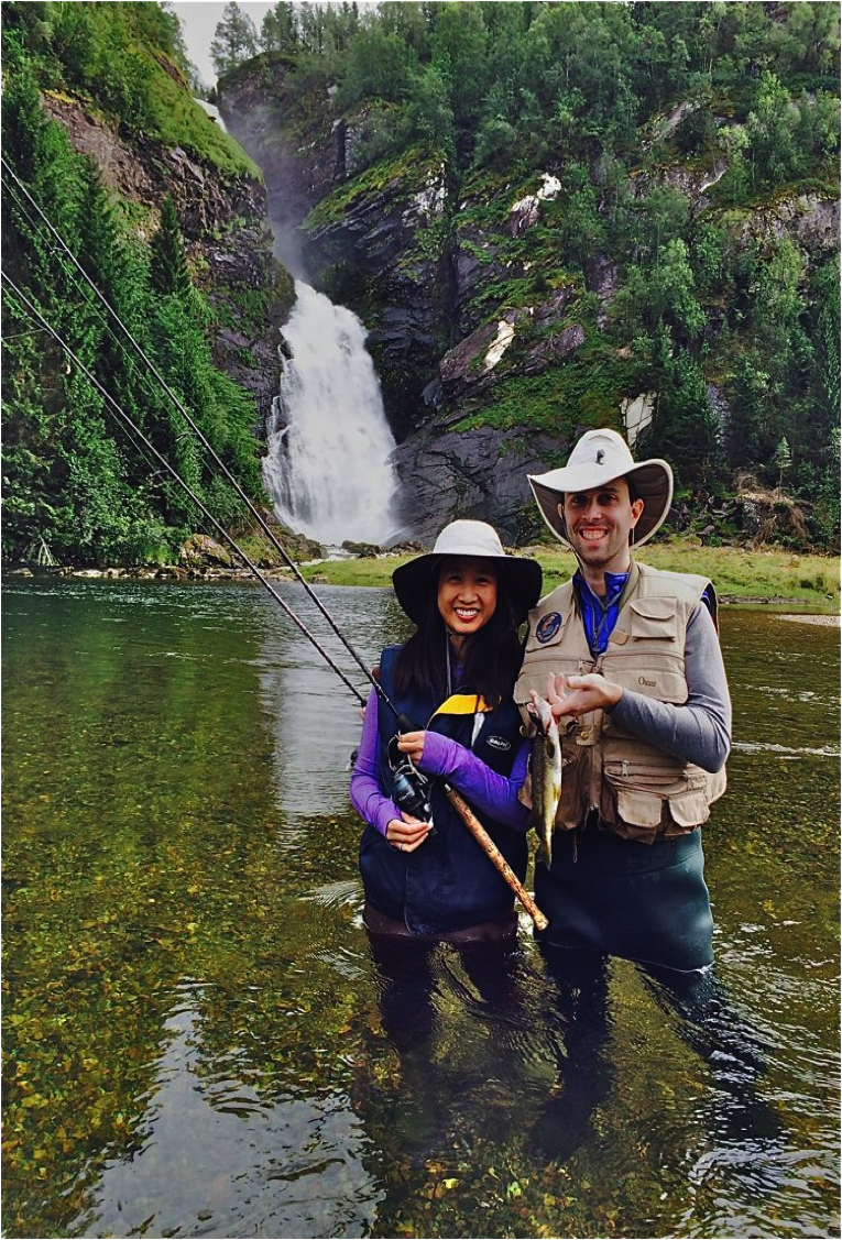 Anna og Matthew Hegreness fra New York fikk en eksotisk og romantisk naturopplevelse på sin bryllupsreise til Sunnfjord og spesielt på sitt fiske med guide i Jølstravatnet og i Jølstra under Hundefossen. Tett på naturen der ute i elva fikk hun og kjæresten også oppleve fiskelykken sammen med guiden.