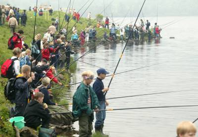 Nå ruller Skolestang 2003 i gang over hele landet. Godt over 1.000 skoler har bestilt klassesett med skolestenger. Lokale jeger- og fiskeforeninger bistår i tillegg skolene med å arrangere en fisketur i nærmiljøet. I 2002 delte man ut 30.000 fiskestenger til glede for mange små.