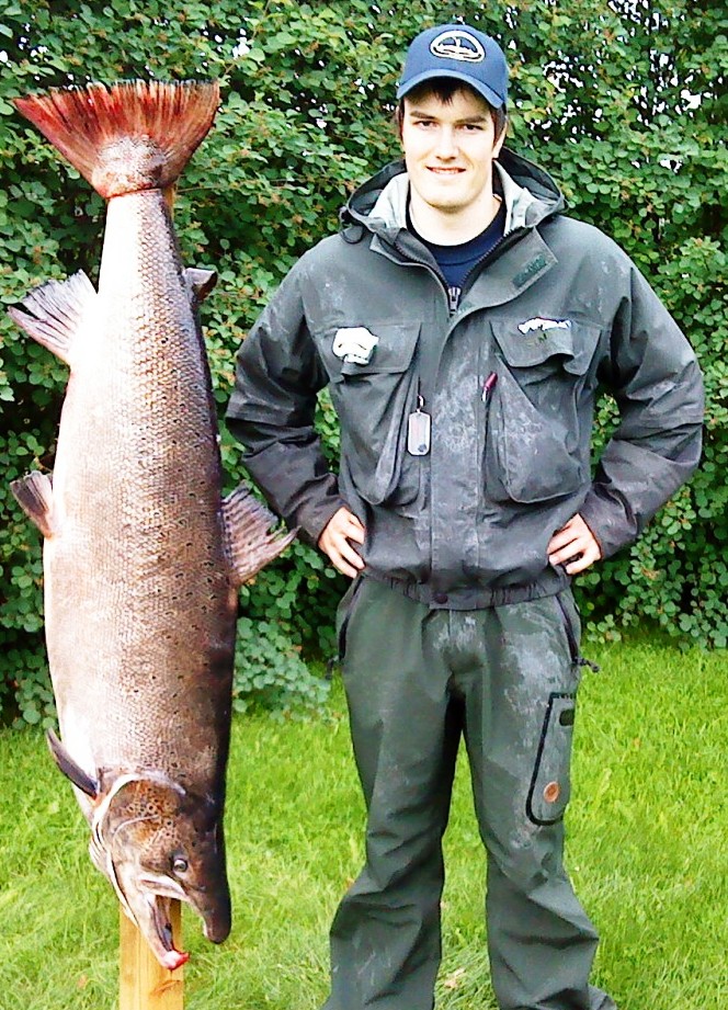 Ulf-Arne Jungård Nilsen (17) tok årets største laks på 26,7 kilo på en Thunder & Lightning tubeflue i Mikkeli i Altaelva. Foto: Vidar Kristensen.