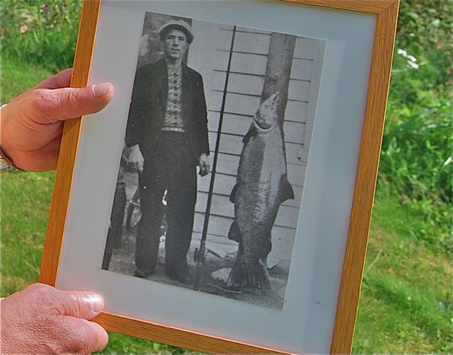Jon viser meg bildet av faren med sin laks på 31,8 kilo som han landet i 1940. Jon drømmer om å se den første 30 kilos-ruggen på land igjen, men vedgår at sjansene er små i hans levetid.