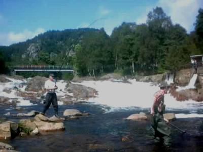 Men med regnet kom flommer og fisken i store flak. Laksen fosset oppover – helt opp til Tryland. Det var som noen skrudde på en bryter, forteller Ove Henriksen til Fiskeguiden. Med fiskeerfaring fra elva de siste 12 år, var han og kameraten Torbjørn Aasen på riktig sted til rette tid. Det ble et liv uten like. Hjertet hoppet og pulsen løp løpsk. Med en kvote på fem laks, måtte de stadig sette ut igjen fisk. Mye var svele ( smålaks), men i fangsten var det også fisk på over 7 kilo.