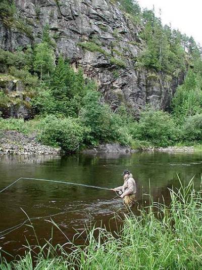 Det var to kuldegrader og snøbyger. Temperaturen i elva viste bare pluss to. Hvem kunne få laks i slikt vær? Nei, de fleste ga opp. Ingen ville få noen laks denne dagen, mente de. Bare to fiskere holdt ut. Tore Mohrsen (bildet) og Frits Løkkemo fra Namsos.