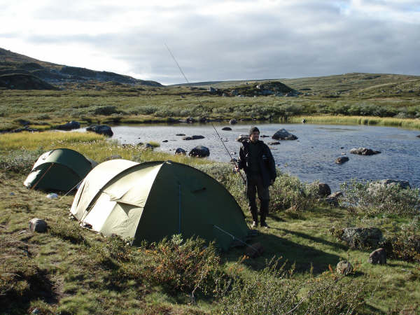 -Årets fisketur til Geitvassdalen ble en kjempeopplevelse, forteller Christopher Gundersen til Fiskeguiden. Sammen med Lars Makk, Hans-Edvard Kjørven(bildet) og Arne Kildal fikk de 30-talls ørret med en snittvekt på 700 gram på de fire dagene i fjellet. Den største var godt over kiloen. Fotturen inn tok 5 timer med stopp. Tilbake gikk de på 3, med sekker tunge som bly og liten lyst til å prate for mye underveis!