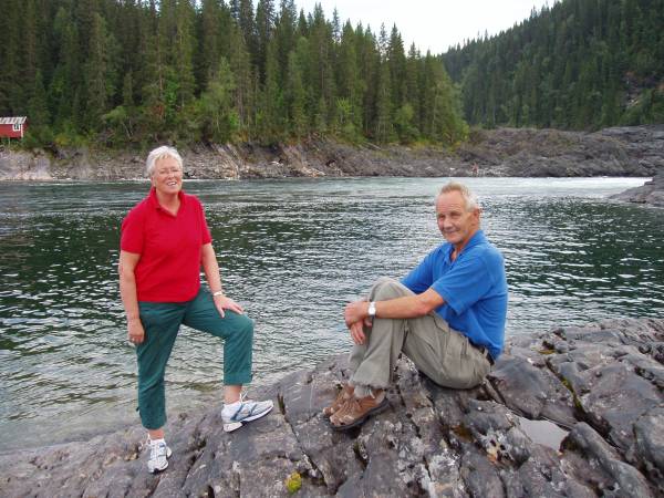 Fiskeguiden Karin Fløtten og Erling Karlsen ved Forsjordio. Foto: Eivind Fossheim.