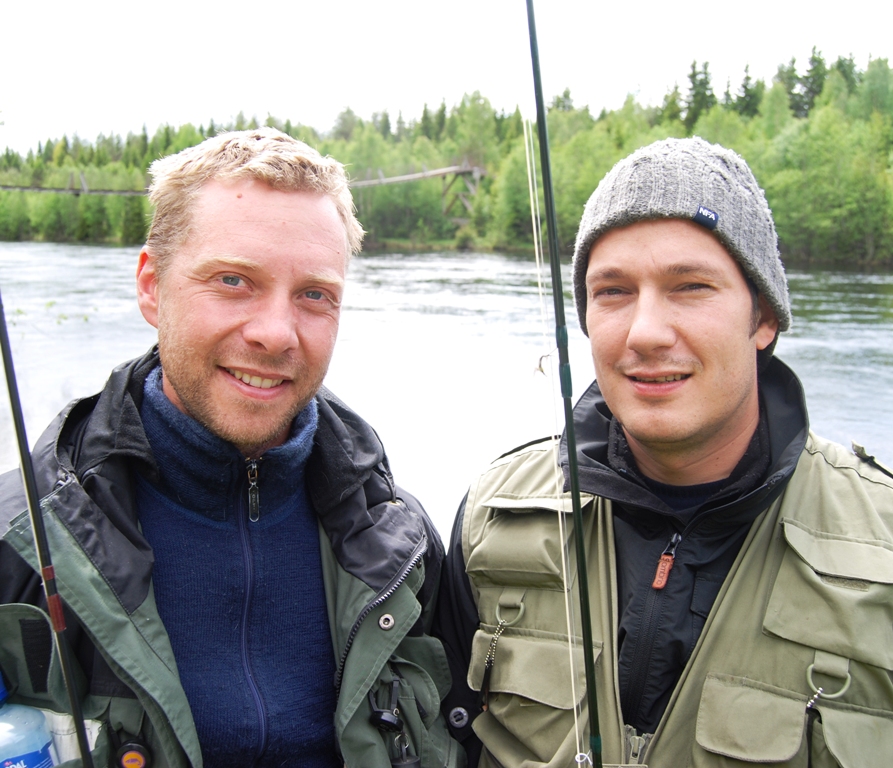 Ulf Harald Pettersen fra Rena ( til venstre) plukker frem knøttet av ei fallskjermflua i grønt, svart og hvitt. I timesvis har han prøvd å lure storfisken – ikke bare den ene, men alle de tre-fire sluggerne som velter seg der ute i Raustrømmen, Jan Åke Berntsen, som bor noen steinkast unna den fiskerike elva mellom Rena og Storsjøen, nikker bekreftende. Som erfaren Rena-fisker og en gluping til å binde tørrfluer som blender både fiskere og storharren, betyr det mye hva Jan Åke mener om den lekre døgnflue-imitasjonen. Synd at bare harren er opptatt av helt andre småkryp akkurat nå. Vi skulle gjerne visst hva den jafset i seg der ute midt i glaninga på oss våryre, fiskesultne menn. Likevel - fluefiskerne i Rena går herlige tider i møte. ( Reportasje: Eivind Fossheim)