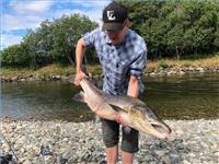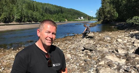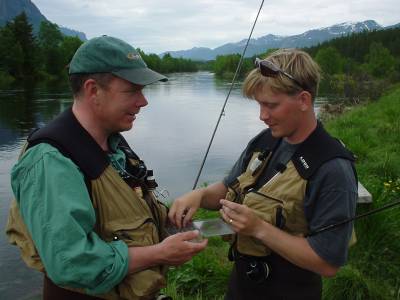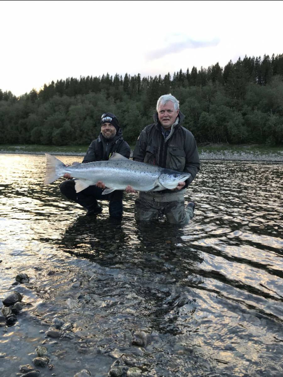 Selv om elva har hatt en urolig forsommer, med mye flom og vekslende vanntemperatur, er det likevel landet et 50-talls laks, forteller lederen Anders Bruvoll (bildet) i Oldenelva Elveeigarlag til Fiskeguiden.no, der vi står på elvekanten og ser at den berømte Keiser-hølen er i ferd med å få tilbake sin normale vannføring og klare bregrønne farge i den skumhvite ville vestlandselva.