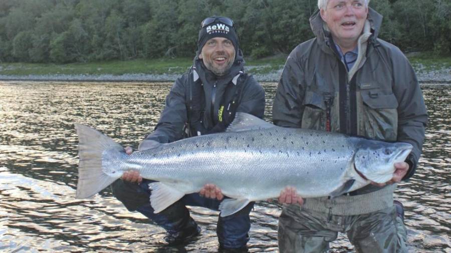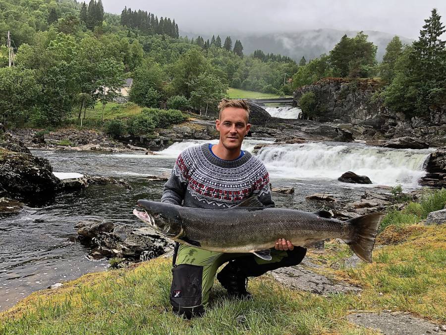Årets fangstkvote på 30 laks over 3 kilo var allerede tatt da Kenneth Stubhaug i går morges landet sin kjempelaks på 15.61 kilo i Hovefossen (bildet). Men den ble ikke gjenutsatt, slik reglene sier. Ene øyet var skadet av spinneren og laksen måtte derfor bøte med livet og havnet på kjøkkenet til gamleheimen i Nustdal, forteller Kenneth til Fiskeguiden.no. Redaktør Eivind Fossheim i Fiskeguiden.no har tidligere hevdet at man bør bare ta livet av fisk med gjelleblødning dersom det er gjenutsettingsplikt. Med sin lange erfaring som fiskeguide mener han at fiskere litt for lettvint kan benytte skader som argument for å ta liv av fangsten sin, mens det meste leges når fisken er tilbake i sitt rette element.