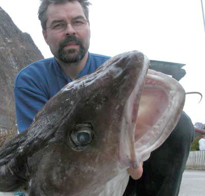 – Det var litt av eit beist, og ho hang berre etter tennene i garnet då ho kom opp til overflata, fortel ein stolt fiskar, Vidar Grimelid, til avisa Ytre Sogn.